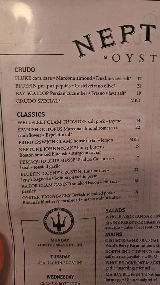 Neptune Oyster in Boston offers a variety of fresh seafood options, salads, and sandwiches. The restaurant is known for its oyster bar and expansive raw bar menu. With a casual yet bustling atmosphere, Neptune Oyster provides a unique dining experience. Some standout dishes include the lobster roll, tuna crudo, and the flavorful redfish and chips. Customers have praised the quality and freshness of the seafood dishes, as well as the attentive service. While there may be a wait to get in, the delicious food and cozy ambiance make it worth it. Neptune Oyster is a must-visit for seafood lovers looking for a memorable dining experience in the North End of Boston.